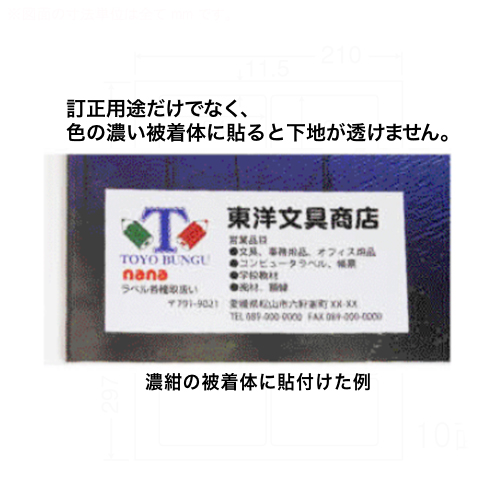 染料インクジェットプリンタのインクが滲みにくい上紙を使用しています。普通紙タイプの薄型ラベルになりますので、貼った部分も目立ちません。