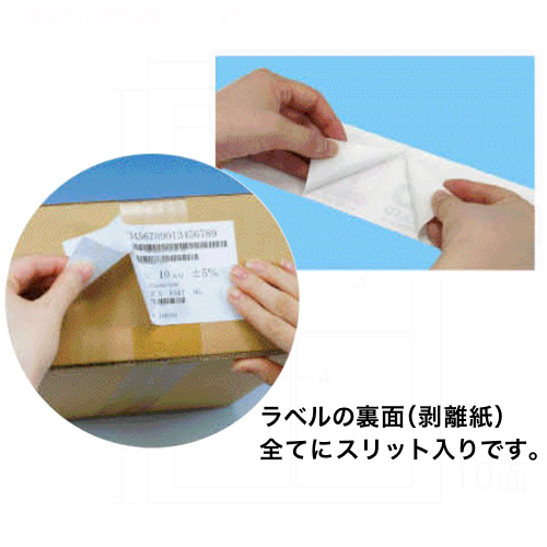 裏スリット入りで簡単に剥離紙よりラベルを剥がすことが可能です。